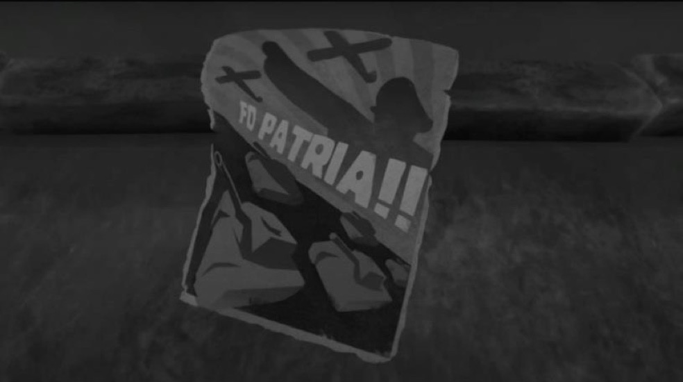 Another semiotic trick that highlights the importance of the homeland is underlined semantically through the double message of the poster in the introductory cutscene (Figure 1). The poster depicts an officer pointing in one direction, with war planes and tanks above and below his face. The meaning of the verbal sign is likely interpreted as “For the Fatherland”, with “Fo” being an alternative spelling of the English “For”. However, “Fo”, in military English terminology, also functions as an acronym for “Field Order”. If we accept this interpretation, then the meaning of the poster is none other than what we would call “Code name: Fatherland”, meaning that Carl is charged with a single mission: to serve his country. In light of this, the pictured officer in the visual message is also essentially pointing metonymically the way to the completion of the task.